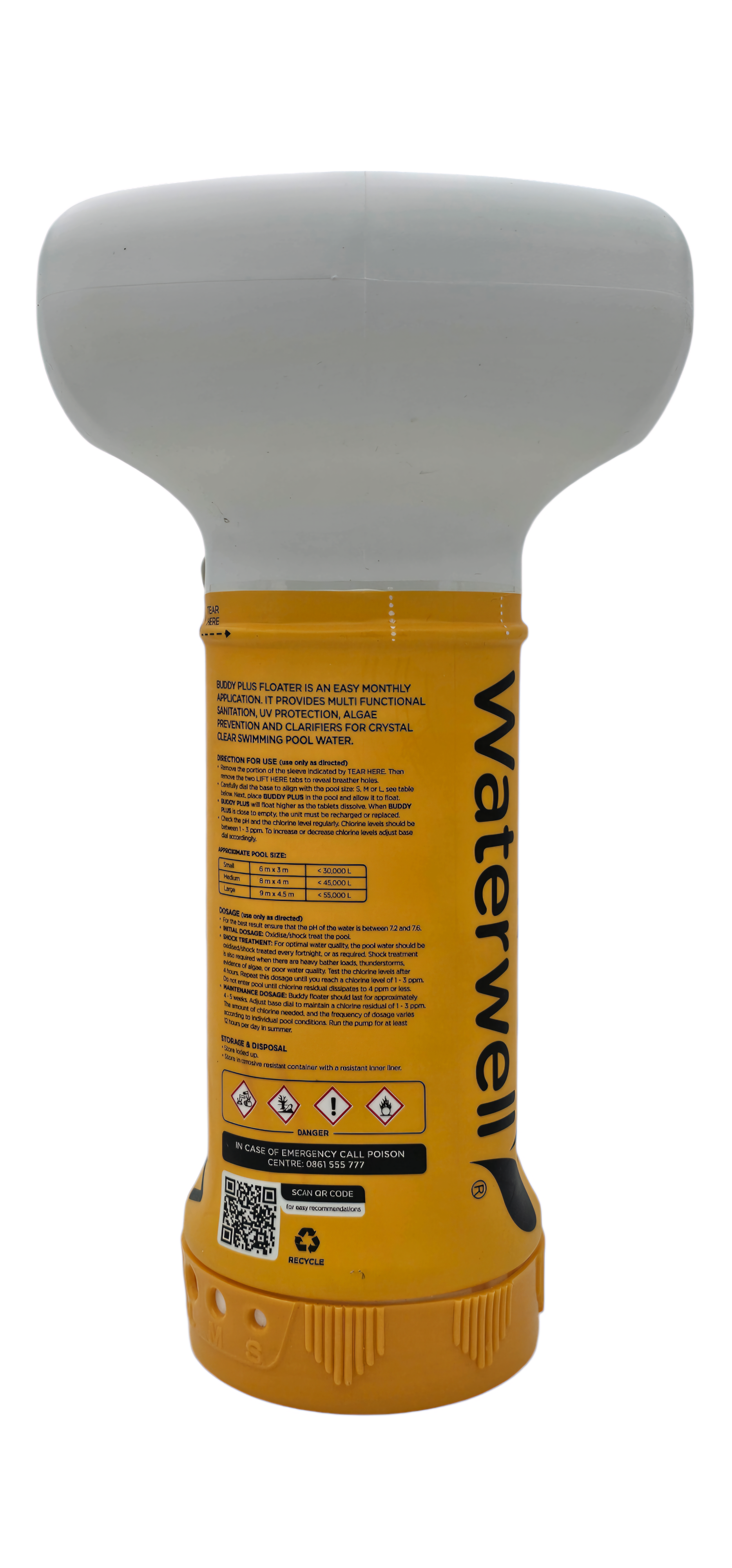 To reduce germs and algae in pool water, the Chlorine Floater Buddy is a long-lasting, stabilized chlorine floater that has 90% accessible chlorine. Dosage and usage instructions: Place the floater in the pool after cutting off the number of nubs that corresponds to the pool's size. Every two weeks throughout the summer, or maybe every week depending on the number of bathers, hot, muggy conditions, or after a lot of rain, pool water needs to be shocked.