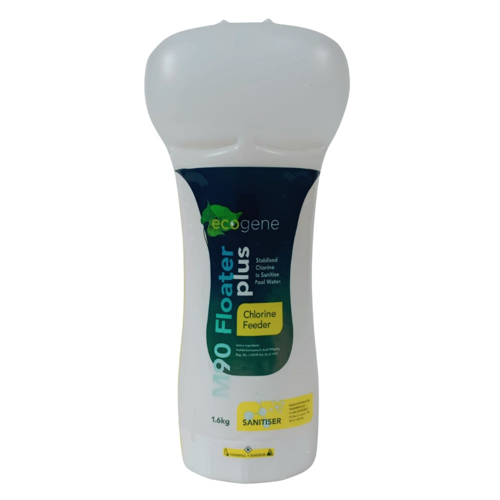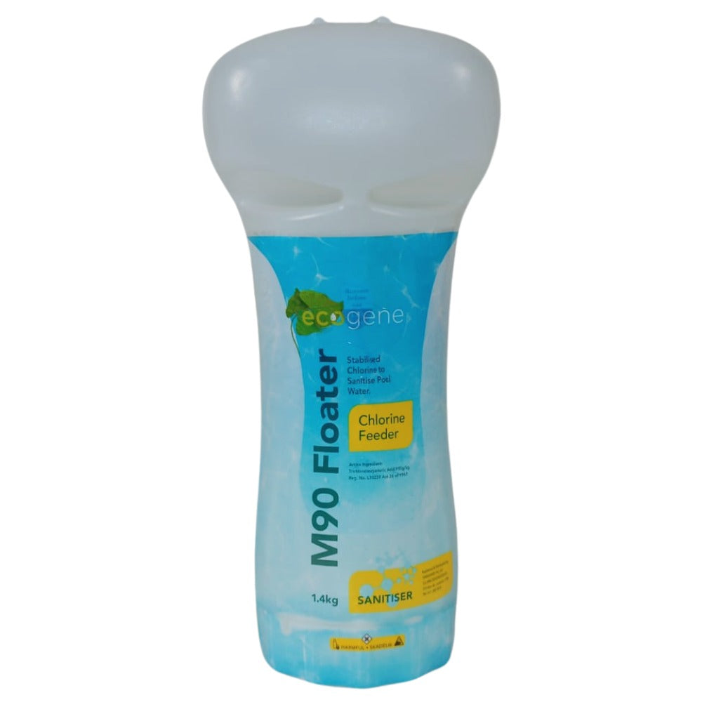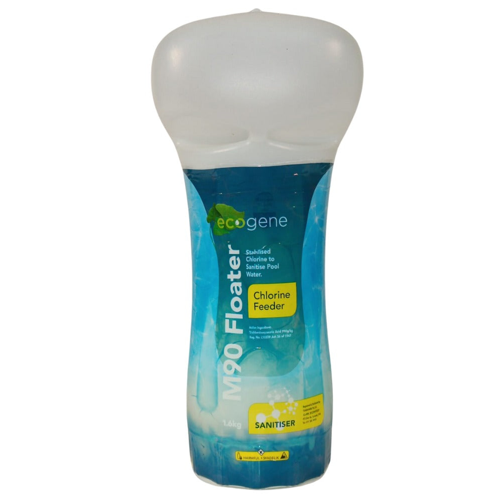 EcoGene M90 Floaters with stabilized chlorine pills to maintain chlorine levels for sanitizing swimming pool water.